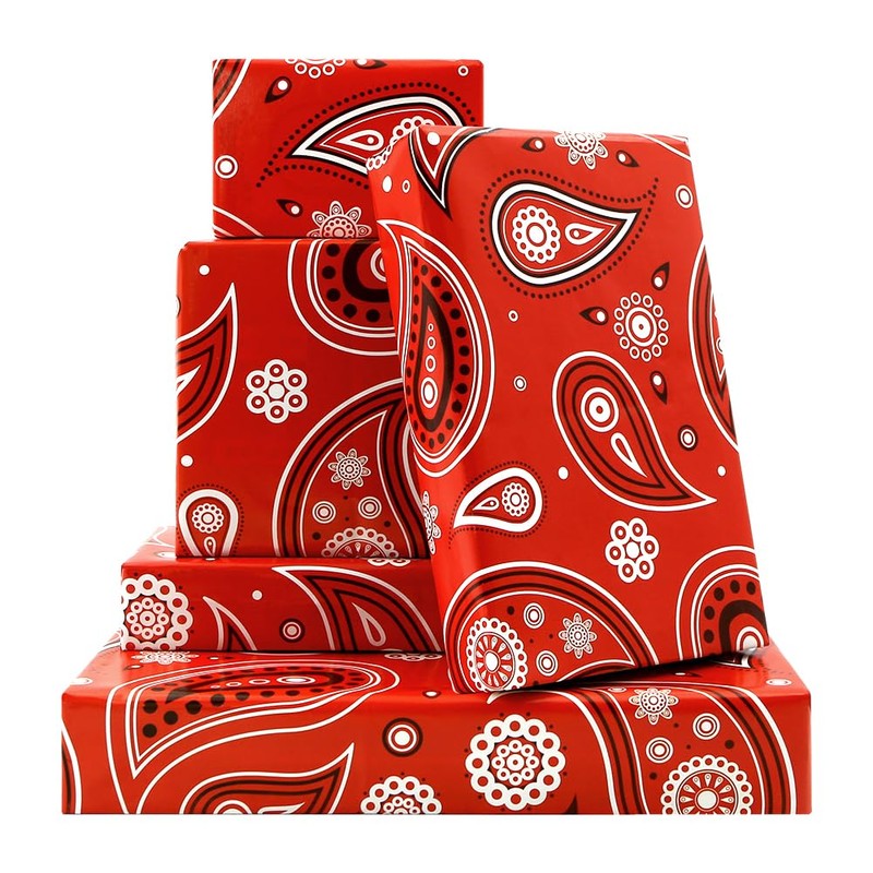 - 🐴Red Vibrant Cashew Flower Wild West Theme Party Wrapping Paper Unique Gift Wrap for Wild West Lover