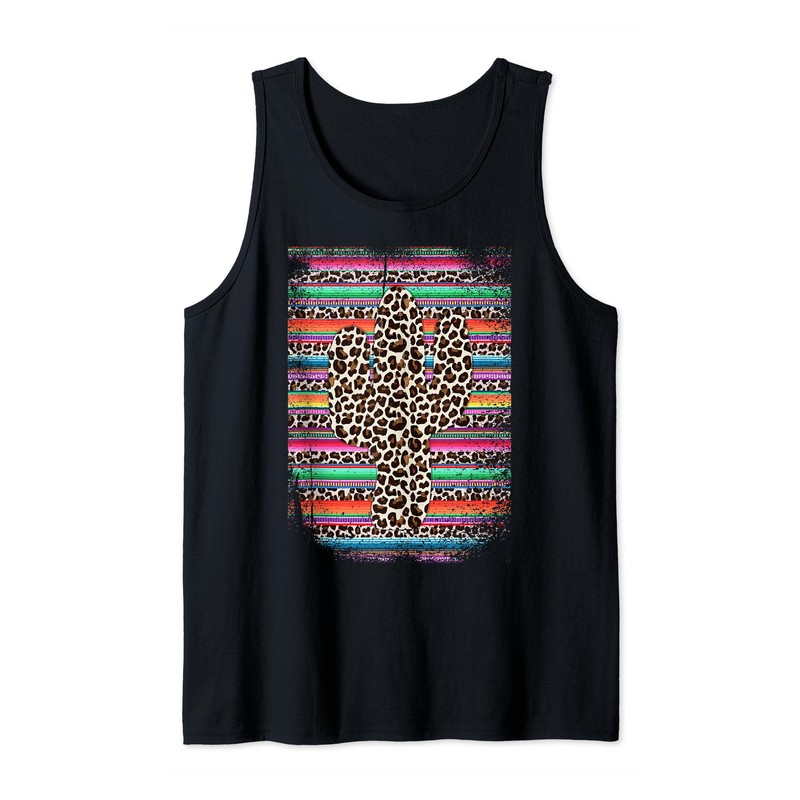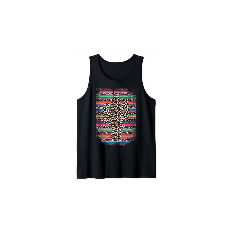 Western Serape print Cactus Leopard pattern Pink Tank Top