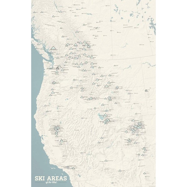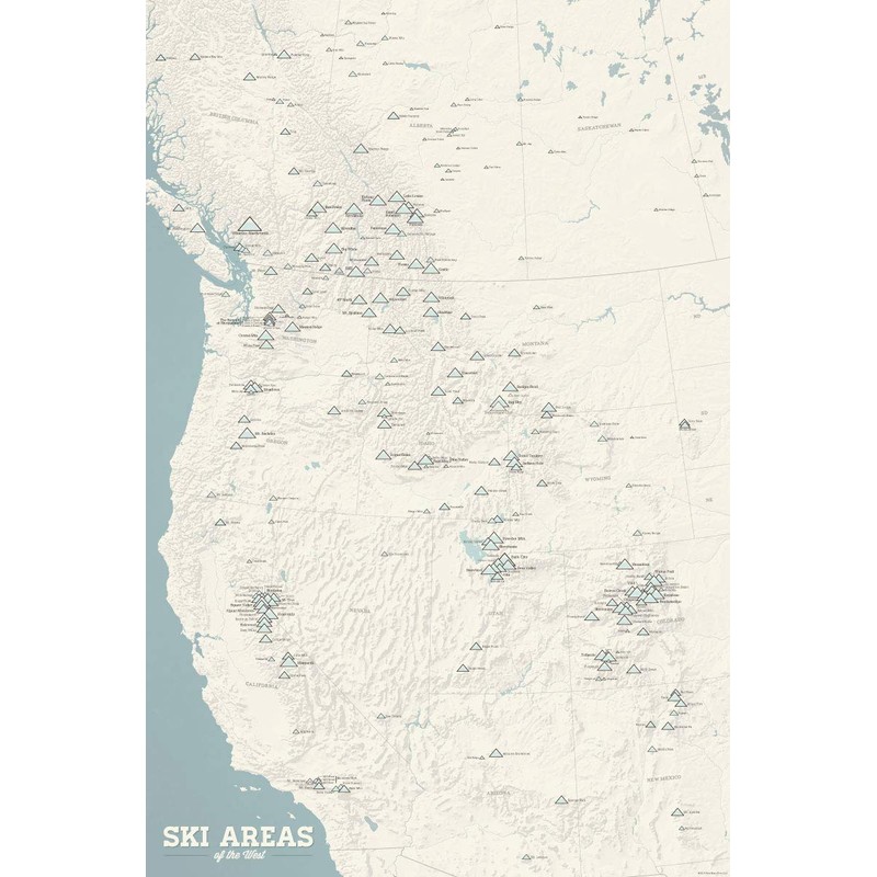 Western Ski Resorts Map 24x36 Poster (Beige & Opal Blue)