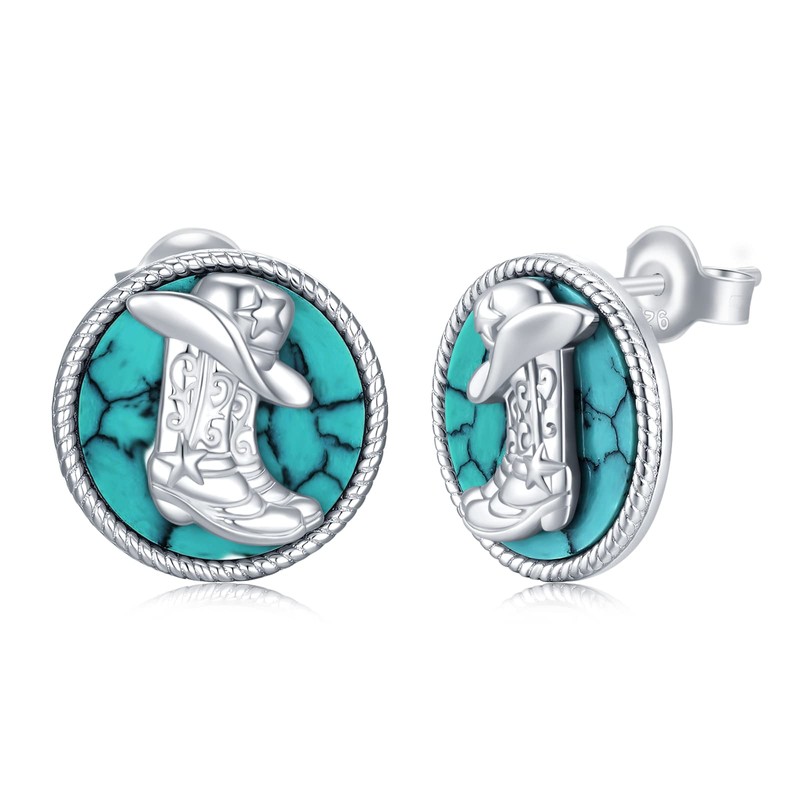 Western West Cowgirl Texas Boots Earrings Sterling Sliver Turquoise Stud Earrings Rodeo Boho Turquoise Jewelry Gift for Women