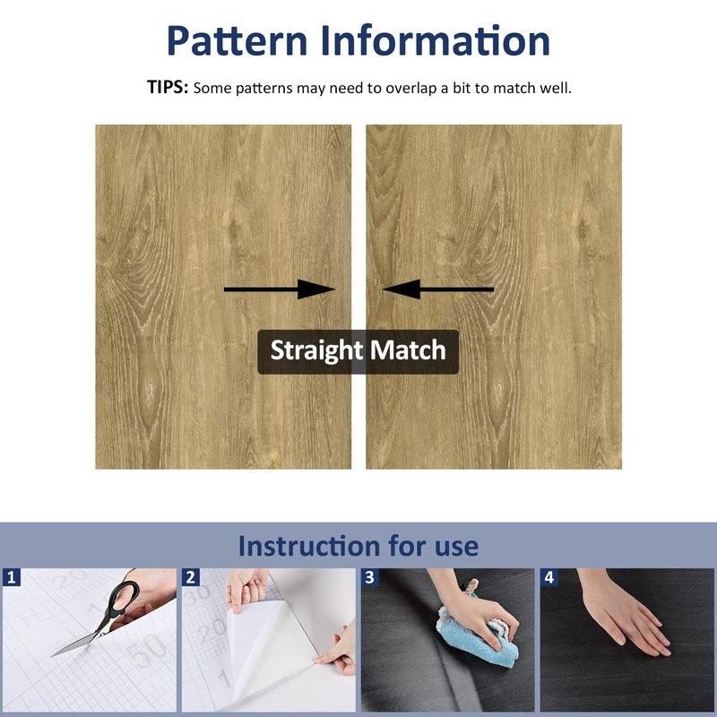 - 【Easy to use】: This renter friendly wallpaper is peel and stick to apply. It‘s easy to install, no need additional glue or complicated installation tools. The peel and stick wallpaper wood look has size marker lines on the back for easy cutting. Use a blow dryer to heat the surface of the removable wallpaper during the application process to make scratches disappear and to make this easy peel off wallpaper fit the object better.