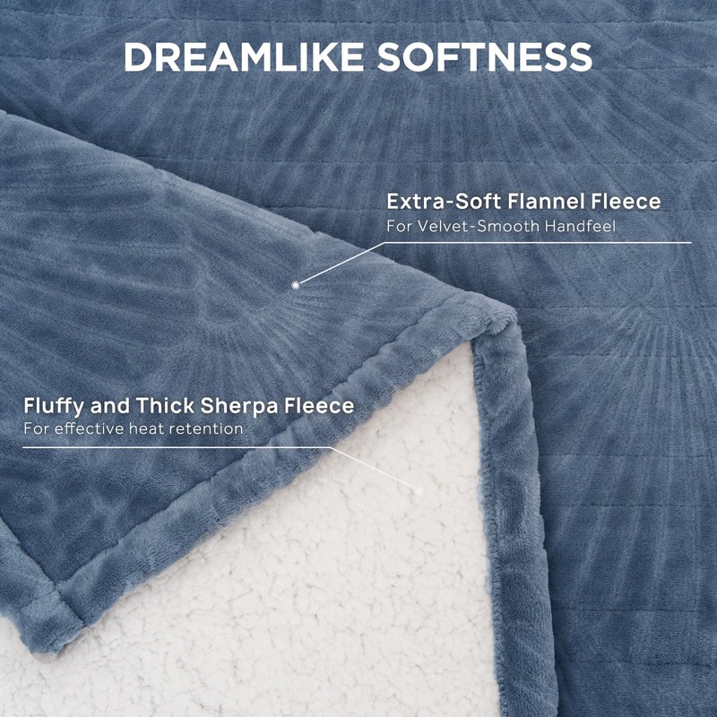 - 【DOUBLE-SIDED LUXURY FOR ULTIMATE COMFORT】 The 240 GSM luxury flannel top and 180 GSM thick sherpa both provide soft touch on each side, which bring you more warmth. This full size heated blanket can relax your body, and relieve fatigue throughout the day