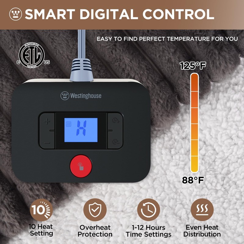- 【ETL & FCC CERTIFIED】 Westinghouse heated blanket has overheat protection that can be ensured your safety during normal use. ETL and FCC certified twin size heating blanket with low electromagnetic radiation. Please read the instructions carefully before use to avoid local overheating caused by improper use