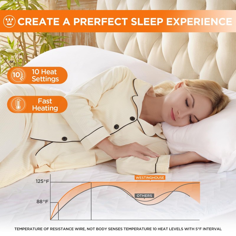 Westinghouse Heated Mattress Pad Queen, Comfortable Electric Mattress Pad with 10 Heating Settings & 1-12 Hours Auto Shut Off, Fit Up to 17" Deep Pocket, Queen Size 60"x80"