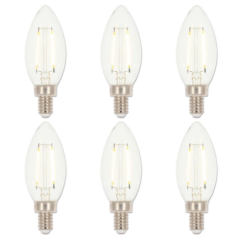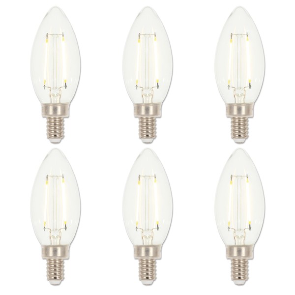 Westinghouse 5059220 2 Watt (25 Watt Equivalent) B11 Dimmable Clear Filament LED Light Bulb, Candelabra Base, 6 Pack