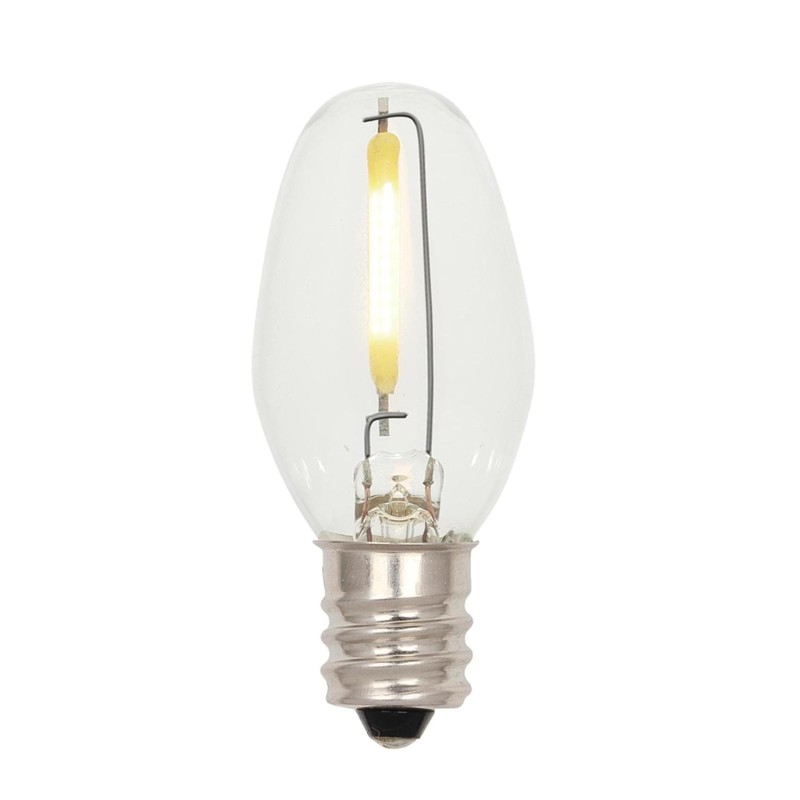 - C7 clear filament LED bulbs provide the look of incandescent light bulbs, ideal for use in night lights, decorative window candles and string lights