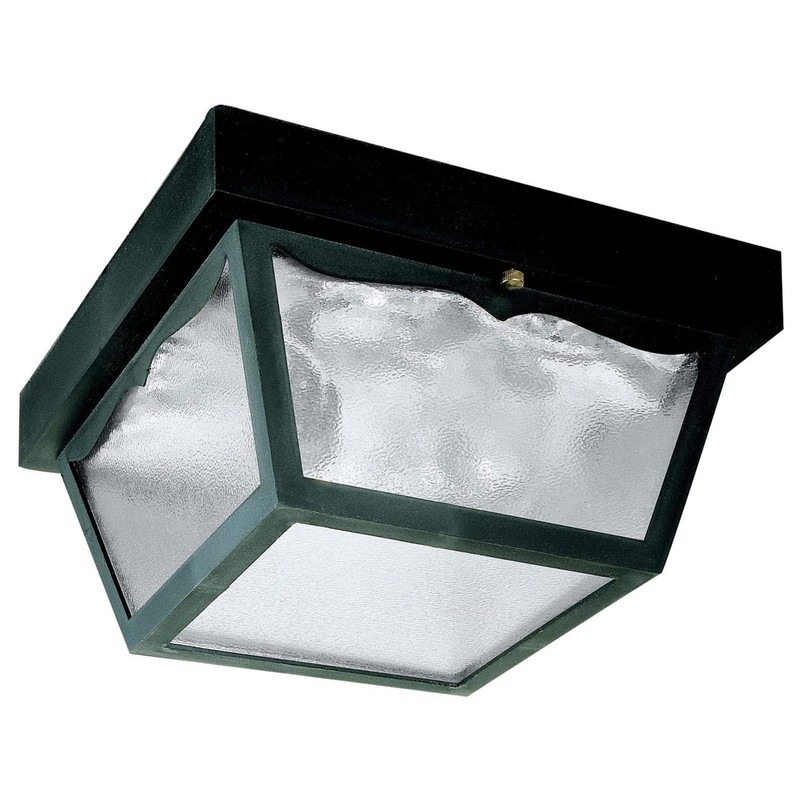 Light the way with this traditional Westinghouse Two-Light Flush-Mount Exterior Fixture. Made of hi-impact polypropylene, this flush-mount ceiling fixture with black finish offers durability and versatile style. The large clear textured glass panels, bordered on top by a bracket-shaped accent, impart a softness that balances the fixture's boxy silhouette. Install this ceiling fixture in your front or back entryway or by your garage door. You can also use it as a welcoming accent for your deck area, patio, balcony, or side entrance. Wherever you mount it, you will enjoy the fixture's inviting light and versatile look. The light fixture is 5-1/2 inches high by 10-1/4 inches square. It uses two medium-base light bulbs, 60-watt maximum (not included). This Westinghouse exterior light fixture is Underwriters Laboratories listed for safety. It is covered by a five-year limited manufacturer's warranty against defects in materials and workmanship. Product reference number 66823.