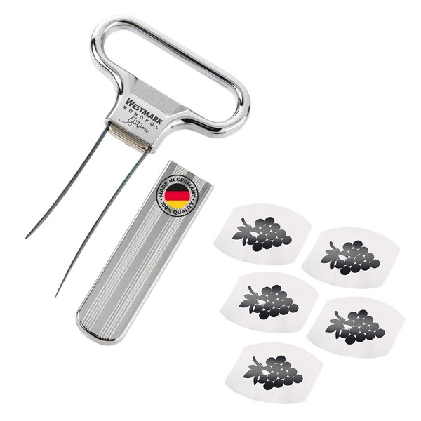 - Box contents: 1 x Westmark wine set, 6 pieces. Consists of 1 x corker/corker, Ah So, (Monopol Edition) + 5 x Safety, material: steel/zinc die-cast/ABS/PET, colour: chrome/silver/black, 628533E6