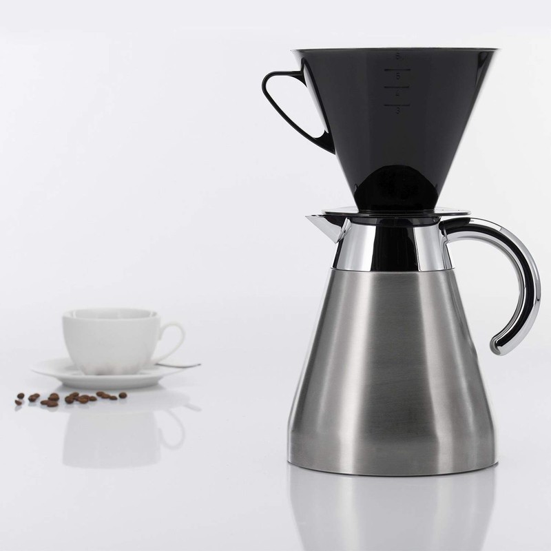 • Grooved filter inside for good hold of the paper filters and for optimal flow into the cup or jug, easy insertion of paper filters (size 6) and pouring hot water on the coffee powder, easy to use thanks to the narrow handle