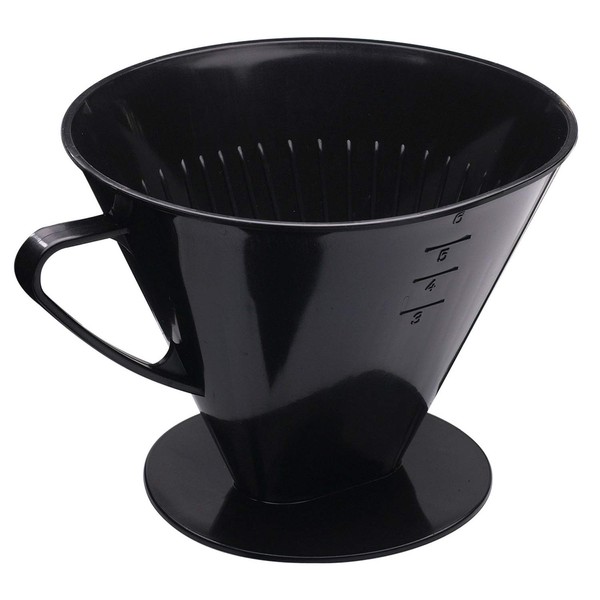 - Grooved filter inside for good hold of the paper filters and for optimal flow into the cup or jug, easy insertion of paper filters (size 6) and pouring hot water on the coffee powder, easy to use thanks to the narrow handle