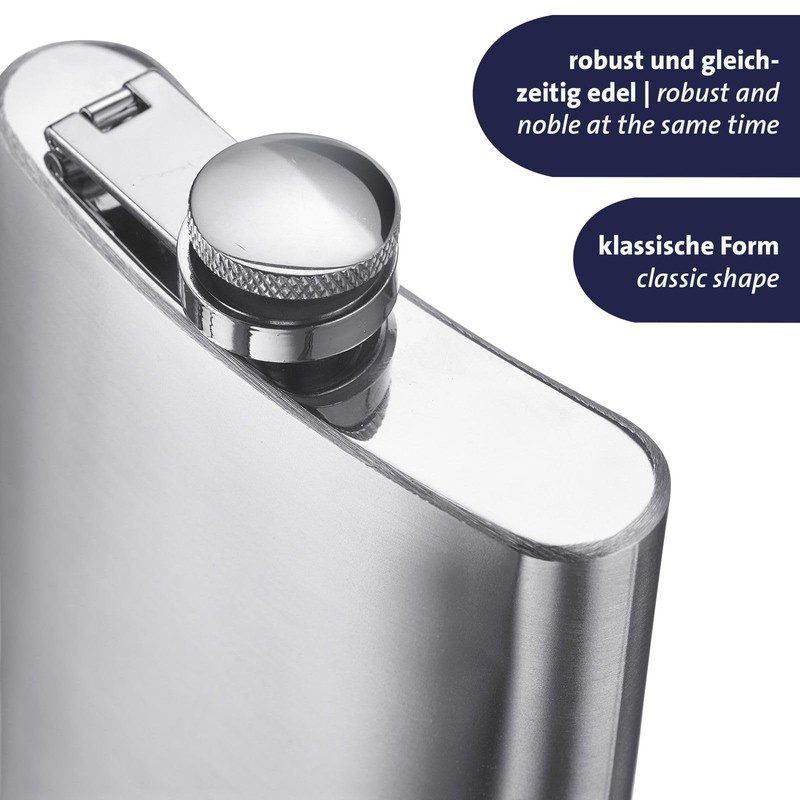 Westmark Delano Hip Flask - Small Flask with Funnel - Drinking Container for Drinks on the Go Premium Pocket Container Dishwasher Safe - 8oz Stainless Steel