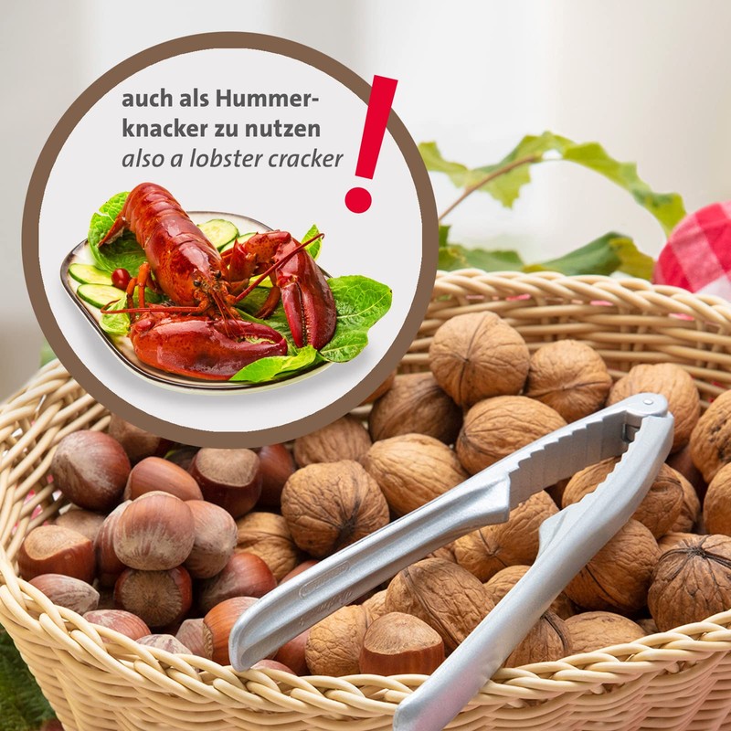 - Effortless cracking of nuts of different sizes thanks to large recess, prevents the nut from slipping away, the finely grooved inner sides hold the nut firmly in the recess, can also be used as a lobster cracker
