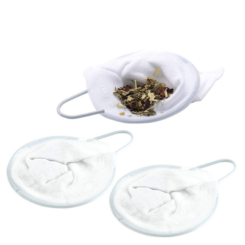 - Classic, sustainable tea nets made of pure cotton, for placing on a tea pot, etc., for brewing loose tea or spices, practical set of 3 for a cosy afternoon with friends (with different tastes)
