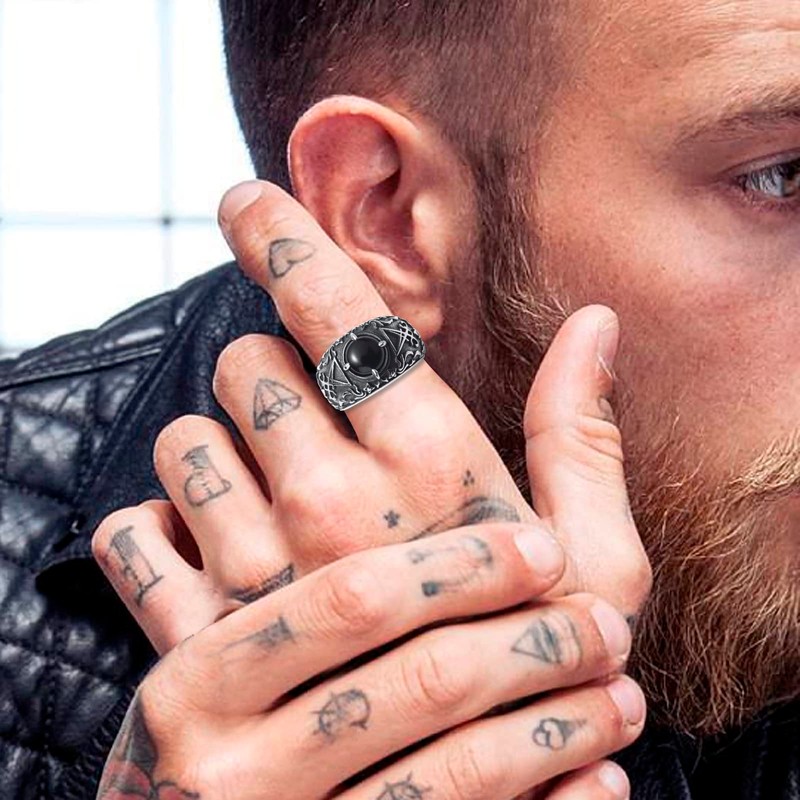 - ✦Satanic Lucifer Rings for Men✦: Unique satan ring with sigil of lucifer,black onyx,and vintage treatment;Lucifer symbol represents freedom,independence,light,wisdom,creation and power.