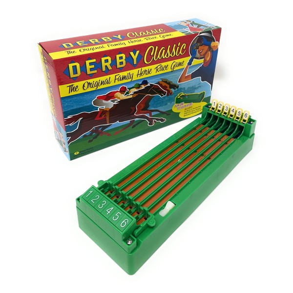 - Este juego de mesa derby de escritorio en miniatura viene con seis caballos.