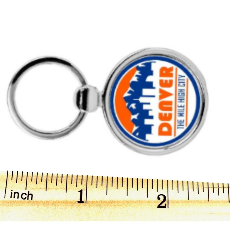 - This keychain features a colorful depiction of Denver’s skyline and mountain range.