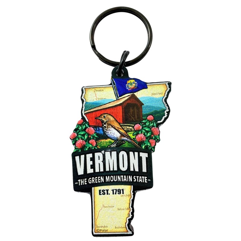 Westmon Works Vermont Keychain Souvenir with State Map and Flag Images Acrylic Key Chain