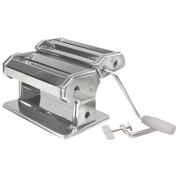 Make fresh, homemade pasta anytime. Includes double cutting attachment for making both fettuccini and spaghetti. Adjustable rollers adjust to 7 various thickness settings. Heavy-duty stainless steel construction and metal housing for a lifetime of use. 6" wide rollers. C -clamp to attach the pasta machine to a countertop. Easy-to-follow instructions and recipe booklet included.