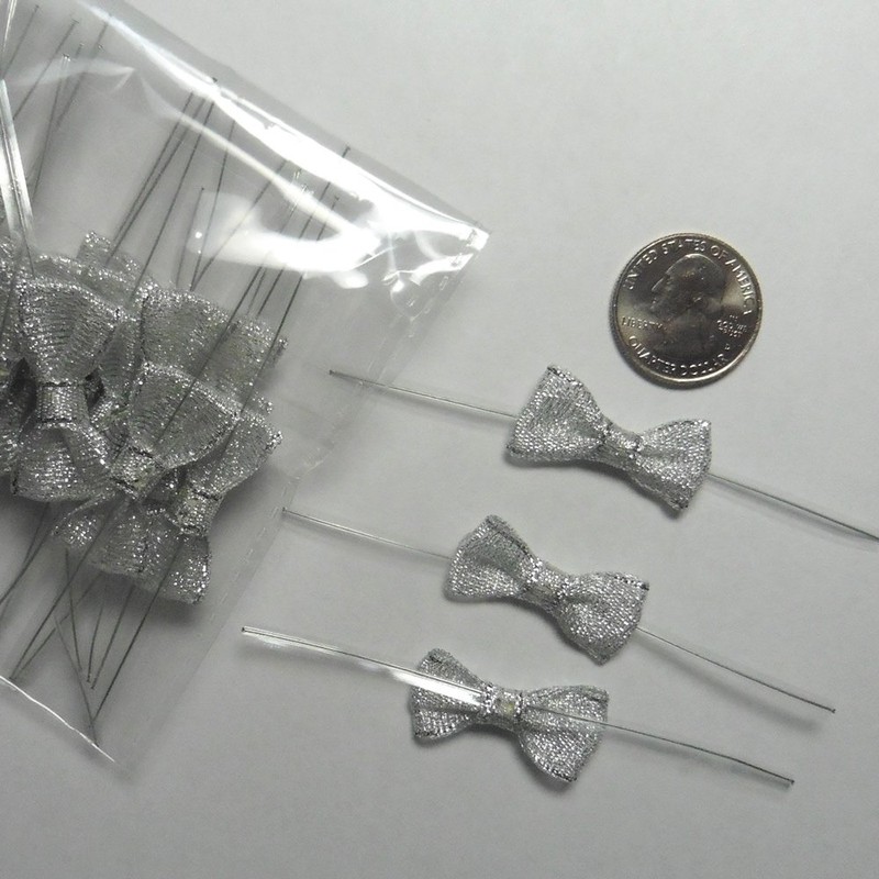- 25pcs Width 1 1/4" metallic glitter ribbon bows, Silver, pre-tied