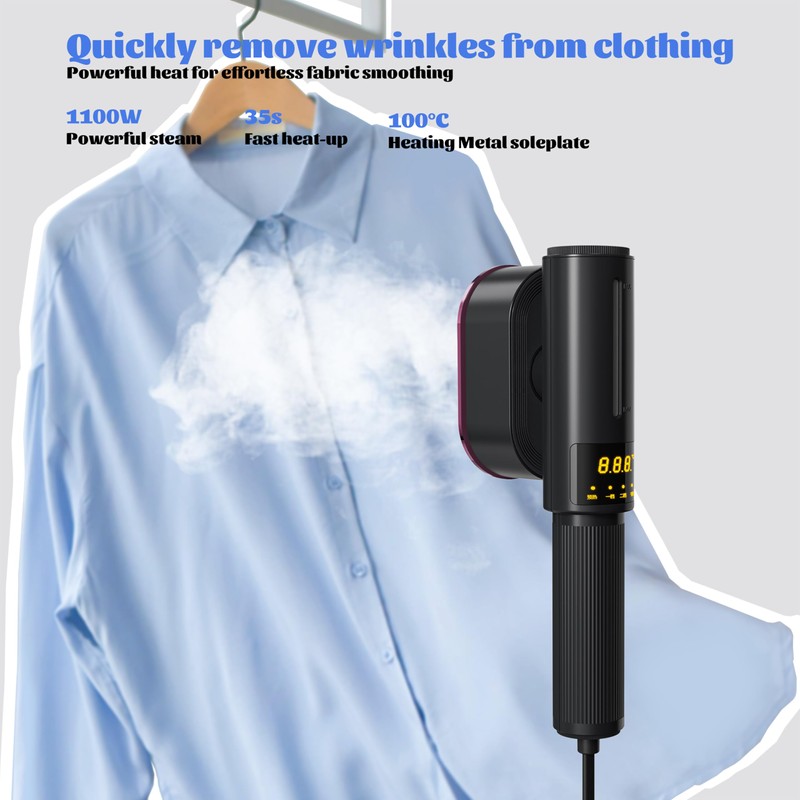 • 1200W steam steamer:Our steam steamer boasts a potent 1200W heating system, reaching 302℉/150℃ in 45 secs. It continuously produces steam for 10 mins, eliminating water refills & waits. Perfect for daily wear, bedding, & curtains, it swiftly restores flatness, ensuring efficient clothing care in one go. No more interruptions – just smooth, wrinkle-free results