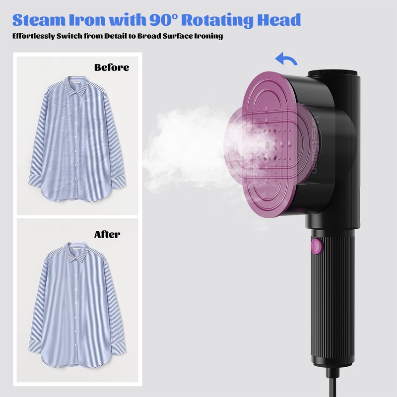 Westswan Wrinkle-Free Travel Companion Rotating Iron Plate Garment Steamer, Suitable for Both Dry Ironing & Steam Ironing, Portable & Lightweight for Home & Travel