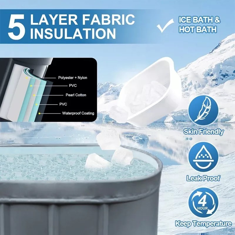 【Easy To Install & Carry】Our collapsible ice bath tub can be used for both indoor and outdoor use and can be assembled quickly and easily in a simple 3-step process. At just 9 pounds, it's very light and portable, and you can effortlessly enjoy the benefits of cold packs through this ice bucket anytime, anywhere, no matter where you're traveling
