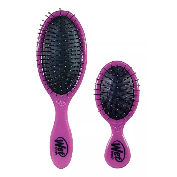 This WetBrush Original Detangler gently separates knots and snags. Ordinary bristle brushes rip through and pull out the knotted hair instead of gently separating it. But these brushes use the exclusive Intelliflex bristles that bend and flex to remove knots effortlessly.; Original Detangler: The exclusive, ultra-soft Intelliflex bristles glide through tangles with ease. It lets you brush with less force so you can detangle with less damage to your hair.; Painless: The WetBrush Original Detangler has flexible bristles that minimize pain, split ends, and breakage of hair. These are easy to use and have a beautiful and comfortable handle design.; For All Hair Types: This brush works perfectly with straight, curly, textured, thick, and wavy hair! They also work great on both wet and dry hair.; Comfortable Design: The brushes are ergonomically designed making them comfortably fit in your palm. These revolutionary brushes glide through tangles with less breakage and pain, letting you flaunt your tresses with style! Soft flexible IntelliFlex bristles detangle hair with ease. Works great on wet or dry hair. Petite sized, Squirt fits easily into your purse, its also great for kids! Perfect for men, women and kids. Works well on all hair types including hair extensions and wigs. Todos nuestros productos estan en inglés SKU 1042225199