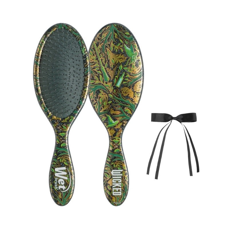 Defy tangles for good with the limited edition WetBrush Wicked 2 Elphaba Detangling Kit. Inspired by Elphaba’s magical spirit, this kit includes the world-famous Original Detangler with a new Elphaba inspired print and Bow Clip, perfect for detangling, styling and creating enchanting looks. Enjoy 100% happier hair with exclusive Wet Brush IntelliFlex bristles that gently move through tangles, while the while the Bow Clip adds some Elphaba to your day.