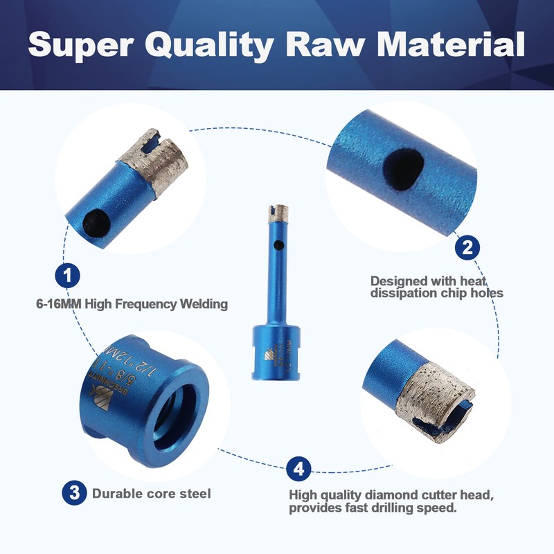 - 【Attention】--Make sure that the water is flowing 100% and coming through the bit before you start to drill.Use enough water to cool down the bit is not only to extend their lives but also improve the better performance of the product.