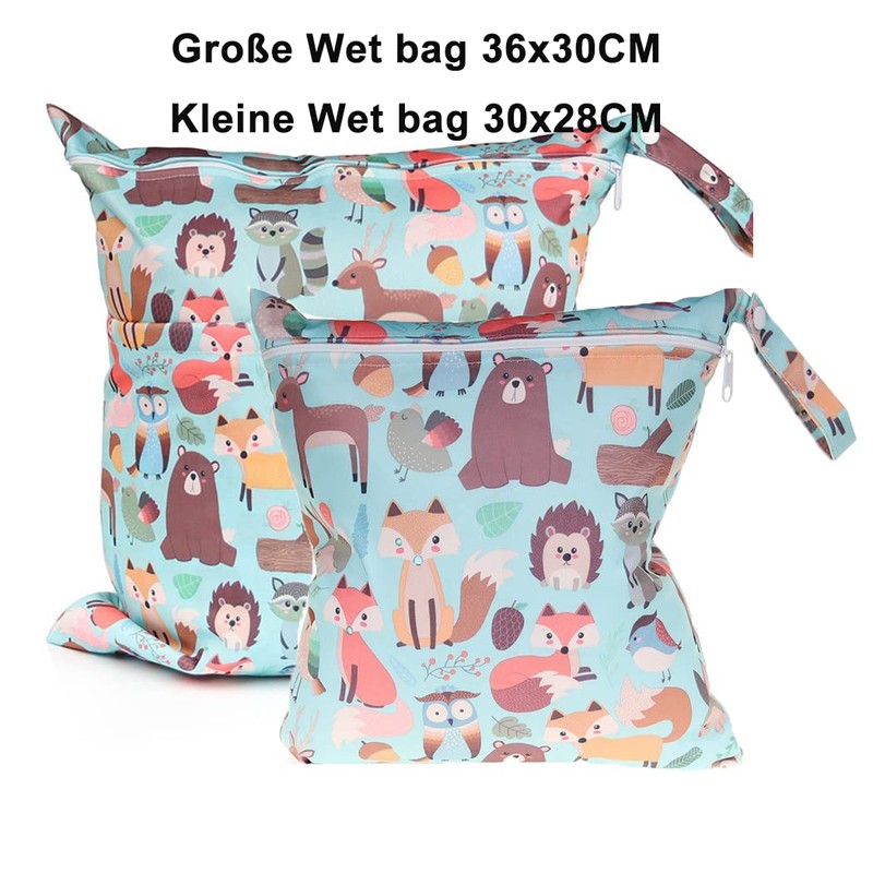 - 【Set of 2】The large wet dry Bag (14x12In) has 2 zippers and 2 compartments for separating dirty diapers from clean diapers or other wet items, can hold about 8-10 diapers. and the medium wet bag (12x11In) has 1 zipper and 1 separate compartment and can hold about 5-7 cloth diapers.