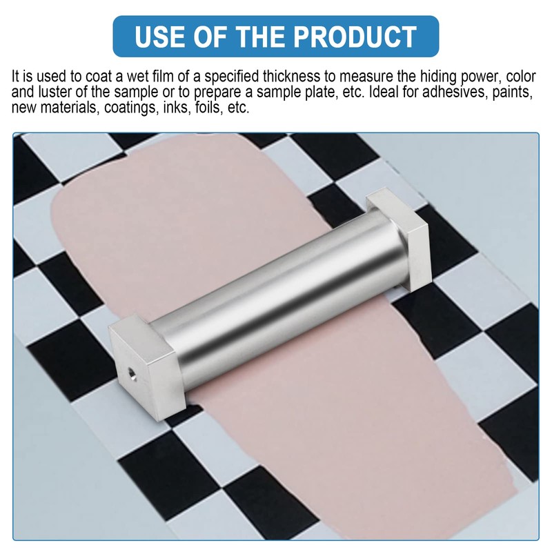 - How to use: Put the template on the platform and fix it, do not move the template when the wet film coater slides over. Select the wet film coater according to the required wet film thickness, put it on the sample plate, then pour the sample in front of the wet film coater, press the two ends of the coater with your fingers, and slide at a speed of 150 mm/s, then you can apply the specified wet film thickness. After use, wash and dry with solvent, and store with oil on the surface.