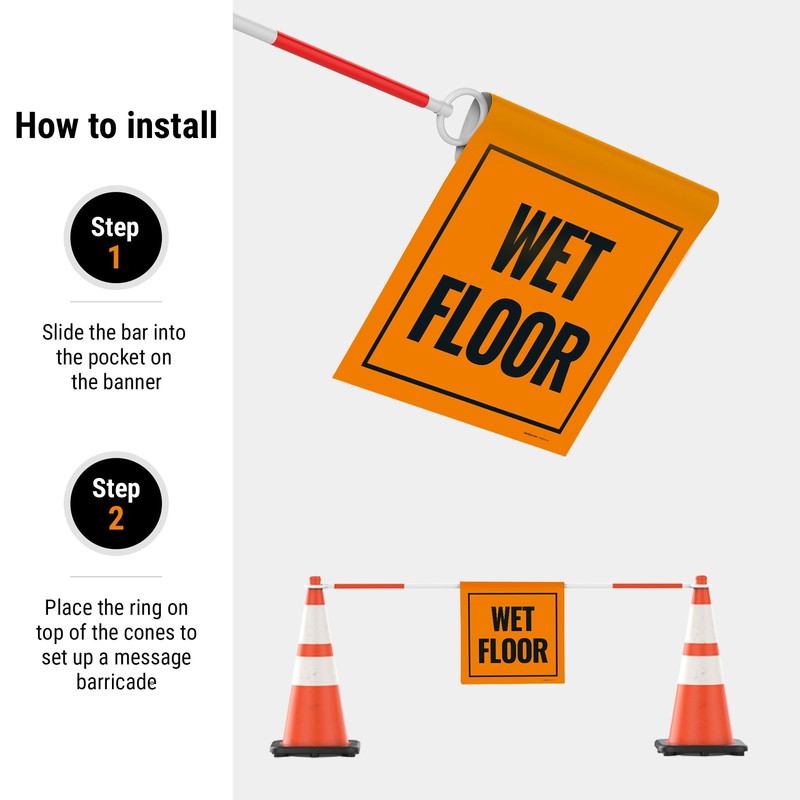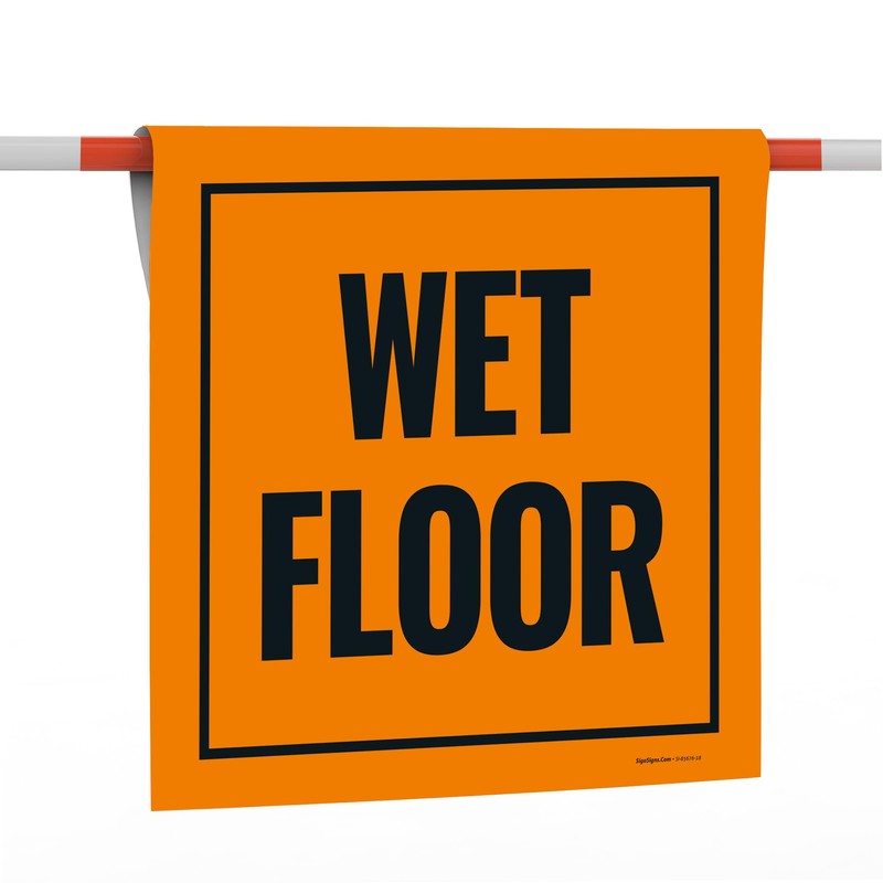 Wet Floor Cone Bar Sign with Bar, 18x18 Banner with Bar, Fade Resistant, Made in USA by Sigo Signs