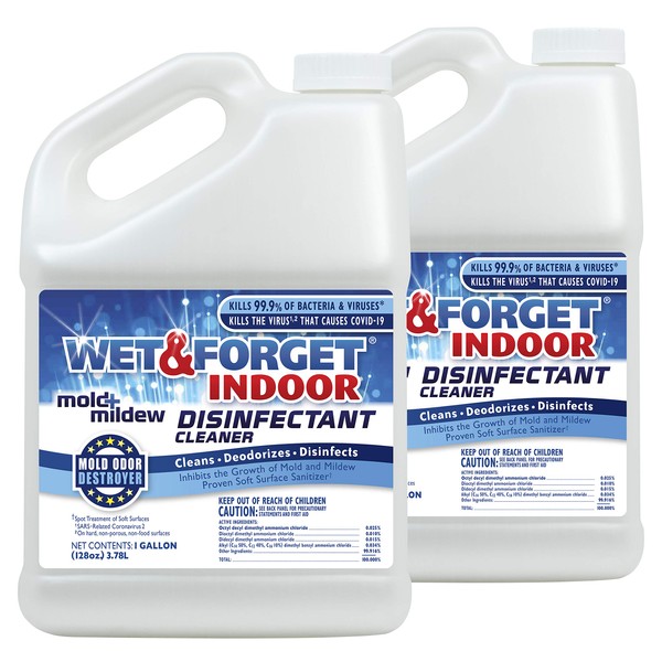Wet & Forget Indoor Mold + Mildew Disinfectant Cleaner, 1 Gallon 2-Pack