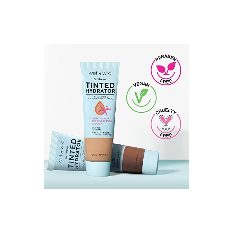Wet n Wild Bare Focus Tinted Hydrator Matte Finish, Light Medium, Oil-Free, Moisturizing Makeup | Hyaluronic Acid | Sheer To Medium Coverage