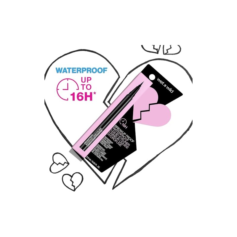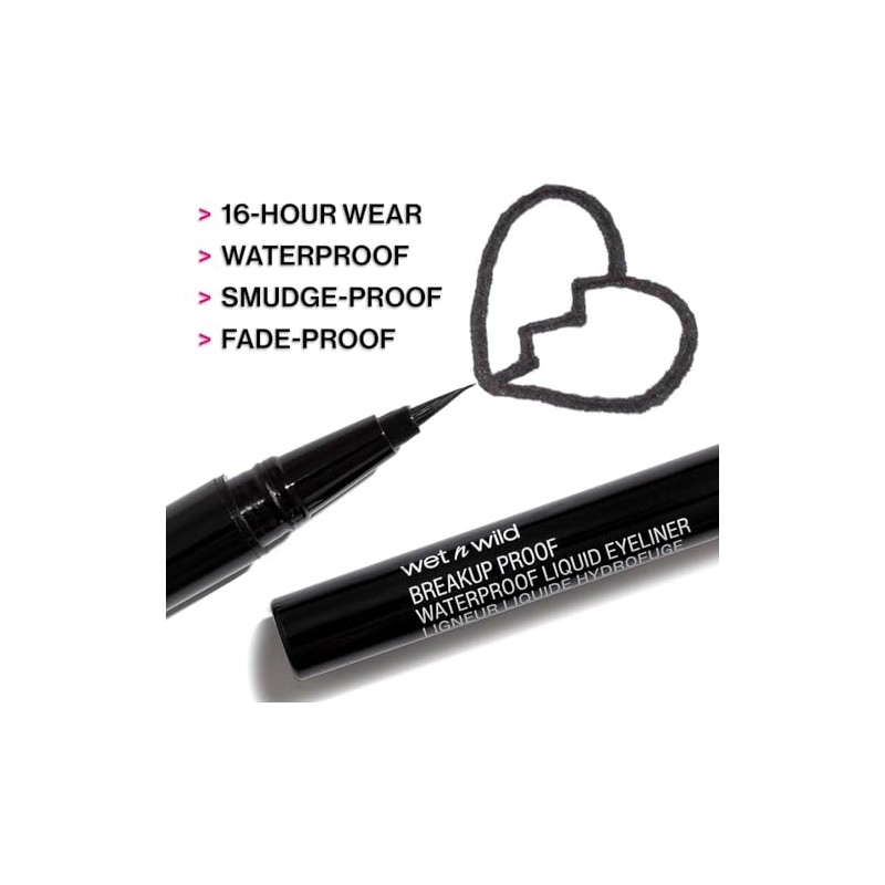 Wet n Wild Wet n Wild Mega Last Breakup Proof Liquid Waterproof Eyeliner Brush Tip Pen | Quick Drying | Smudge Resistant| Long Lasting 16 Hour Wear| Precise Ultra Fine | Black