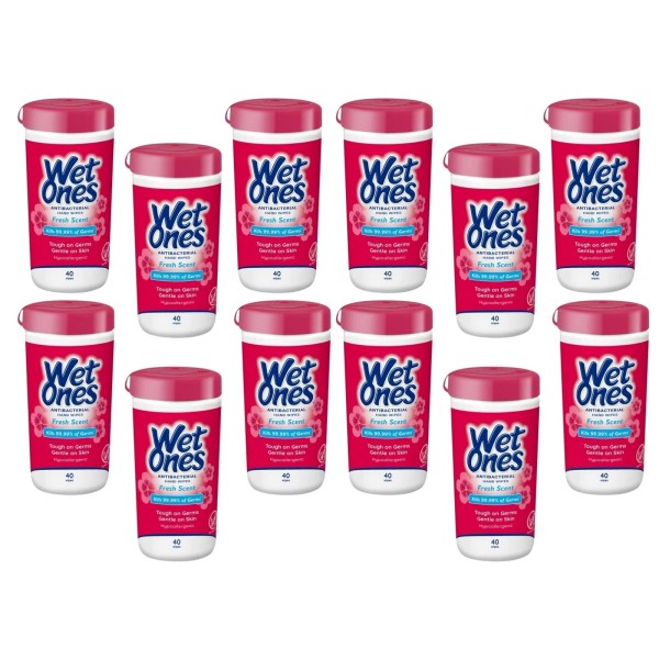 Wet Ones Antibacterial Hand Wipes, Fresh Scent - 12 Pack (40 Wipes per Canister)
