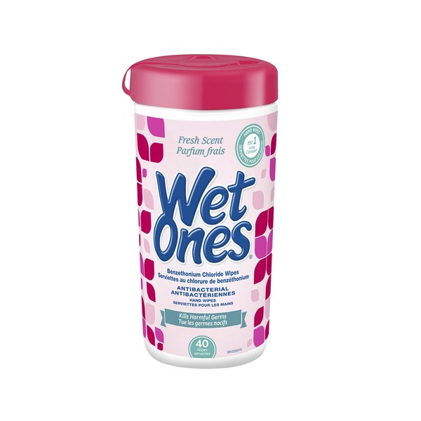 Wet Ones Antibacterial Hand Wipes, Fresh Scent, Wet Wipes, 40 Count Canister