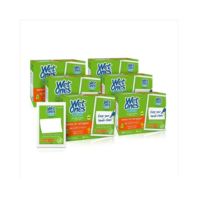 Wet Ones Kids Writable Antibacterial Hand Wipes, 24 Ct, Fruity Fresh (6-Pack)