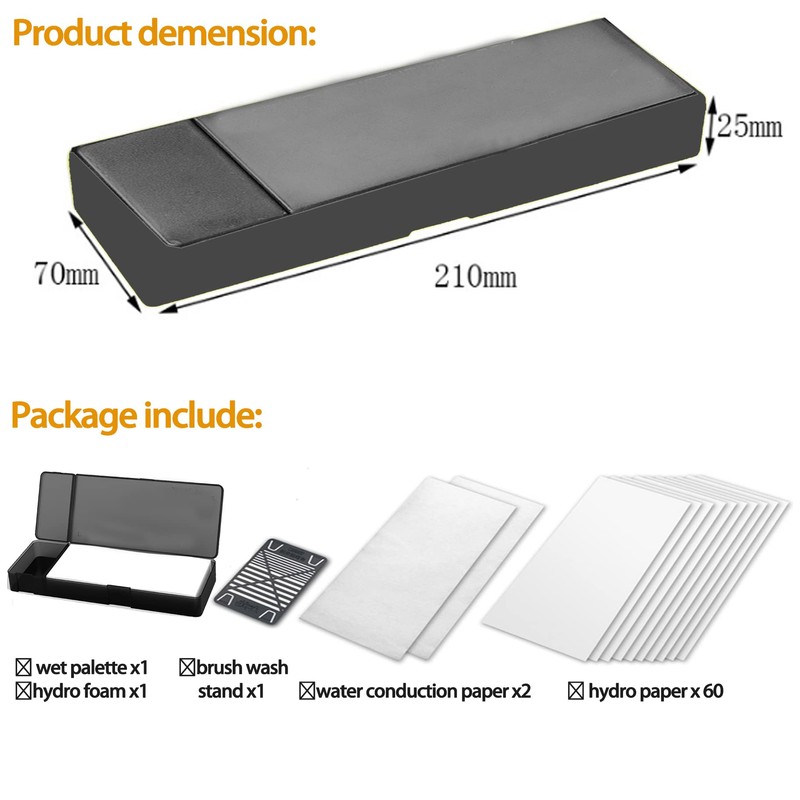 • Advanced Hydration System-The everlasting wet palette is applied with 3 layer design.The Melamine foam made of water-locking material can store a large amount of water in the bottom to provide sufficient water to the surface hydra paper through the water-conducting paper in the middle layer, keeping sufficient humidity in the palette to stay the pigment moisturizing for week