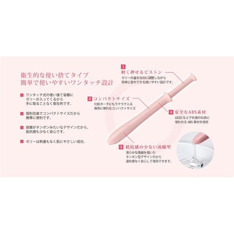 3. Pinch the body and lightly press the piston to release the lubricating jelly. Push down the piston completely. Ingredients: