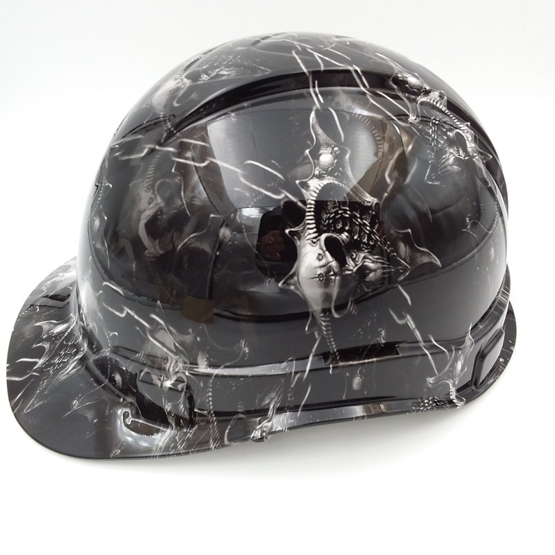Wet Works Imaging Customized Pyramex Cap Style White Hell Raiser Skulls Hard Hat with Ratcheting Suspension