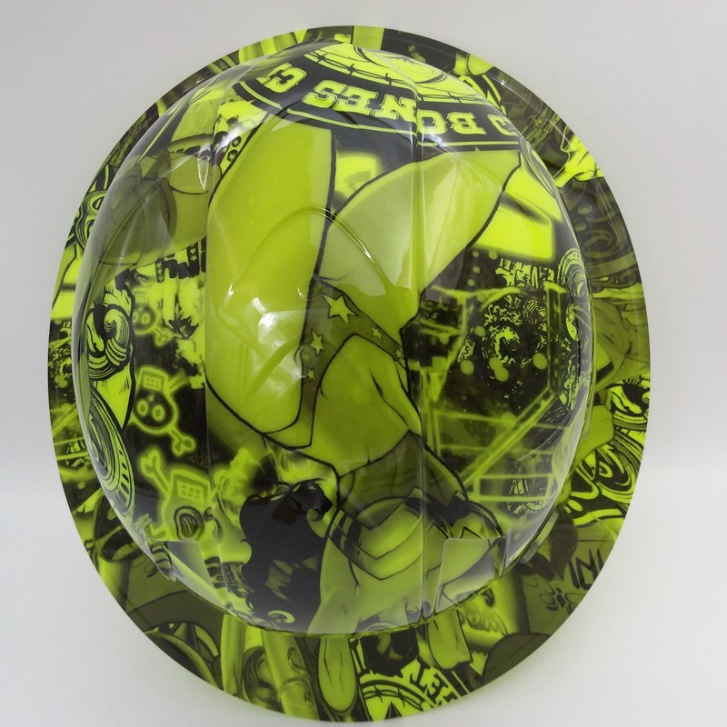 Wet Works Imaging Customized Pyramex Full Brim Green Bad Bones Hard Hat with Ratcheting Suspension
