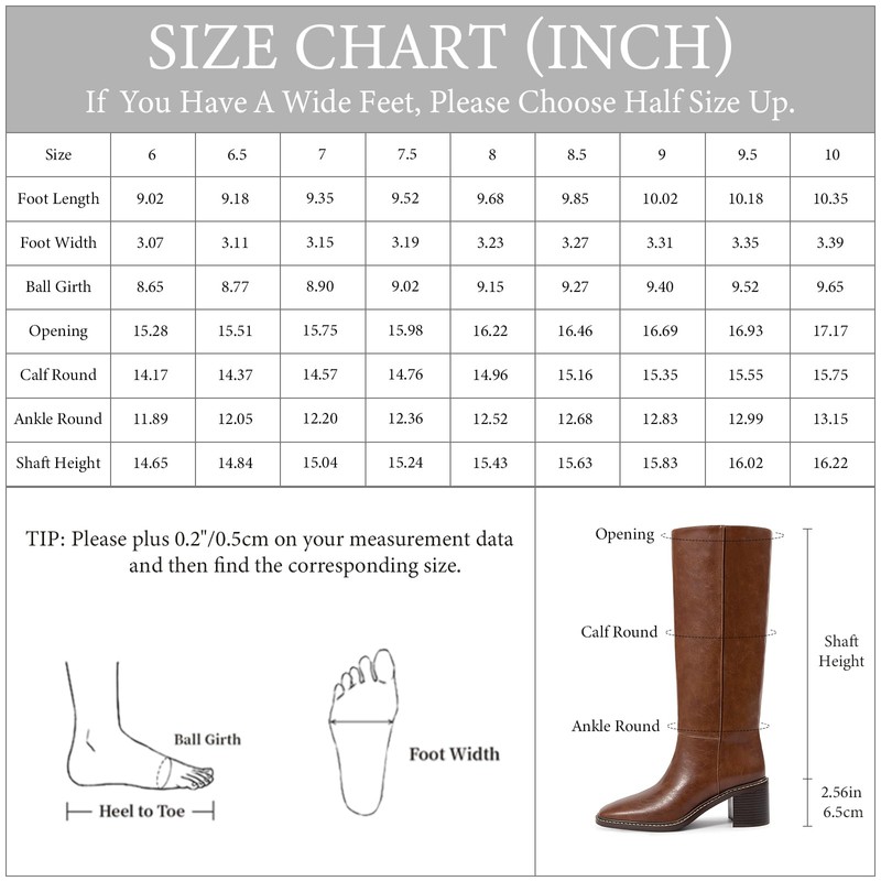 • Womens Riding Boots Size - Our knee high boots for women are crafted by US size, please refer to the size chart before purchasing.