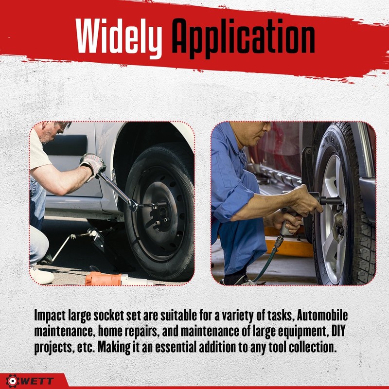 - 【Application】Impact large socket set are suitable for a variety of tasks, Automobile maintenance, home repairs, and maintenance of large equipment, DIY projects, etc. Making it an essential addition to any tool collection.