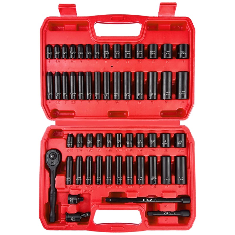 - 【Package Include】: SAE: Deep: 5/32",3/16", 7/32", 1/4", 9/32", 5/16", 11/32", 3/8", 7/16", 1/2", 9/16". Shallow: 5/32",3/16", 7/32", 1/4", 9/32", 5/16", 11/32", 3/8", 7/16", 1/2", 9/16". Metric: Deep: 4mm, 4.5mm, 5mm, 5.5mm, 6mm, 7mm, 8mm, 9mm, 10mm, 11mm, 12mm, 13mm, 14mm, 15mm. Shallow: 4mm, 4.5mm, 5mm, 5.5mm, 6mm, 7mm, 8mm, 9mm, 10mm, 11mm, 12mm, 13mm, 14mm, 15mm. Accessory: 3", 6" Extension bars, 1/4" Universal Joint, 3/8" to 1/4" adapter. 1/4" 72th-Tooth Ratchet Handle.