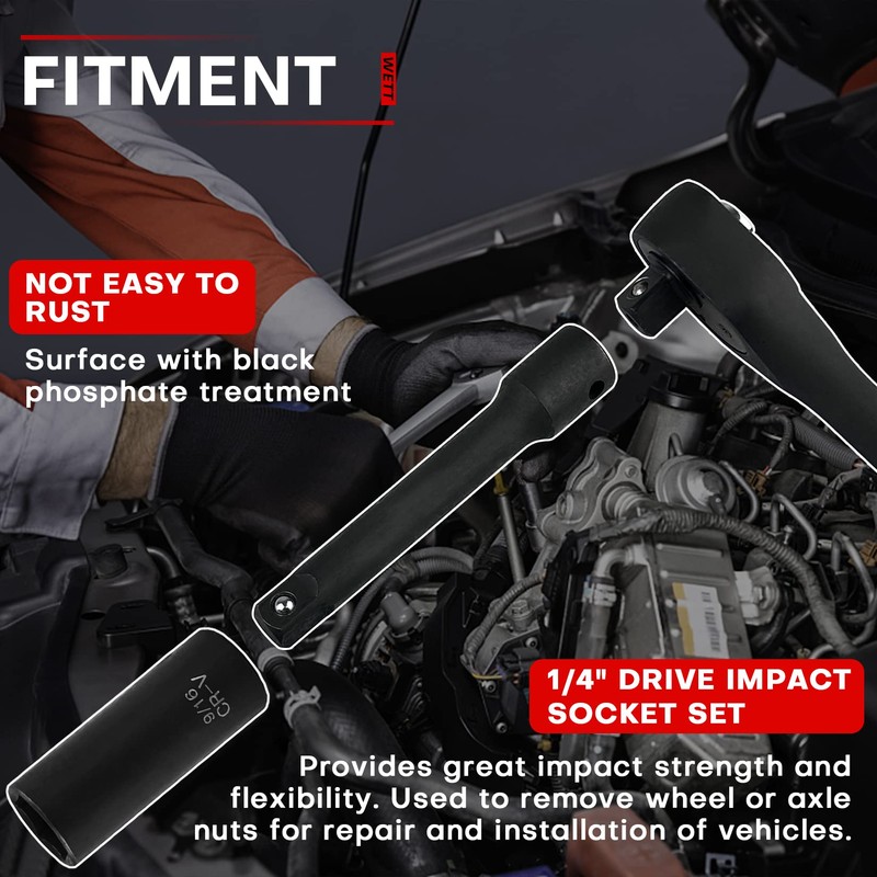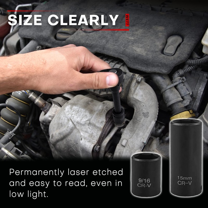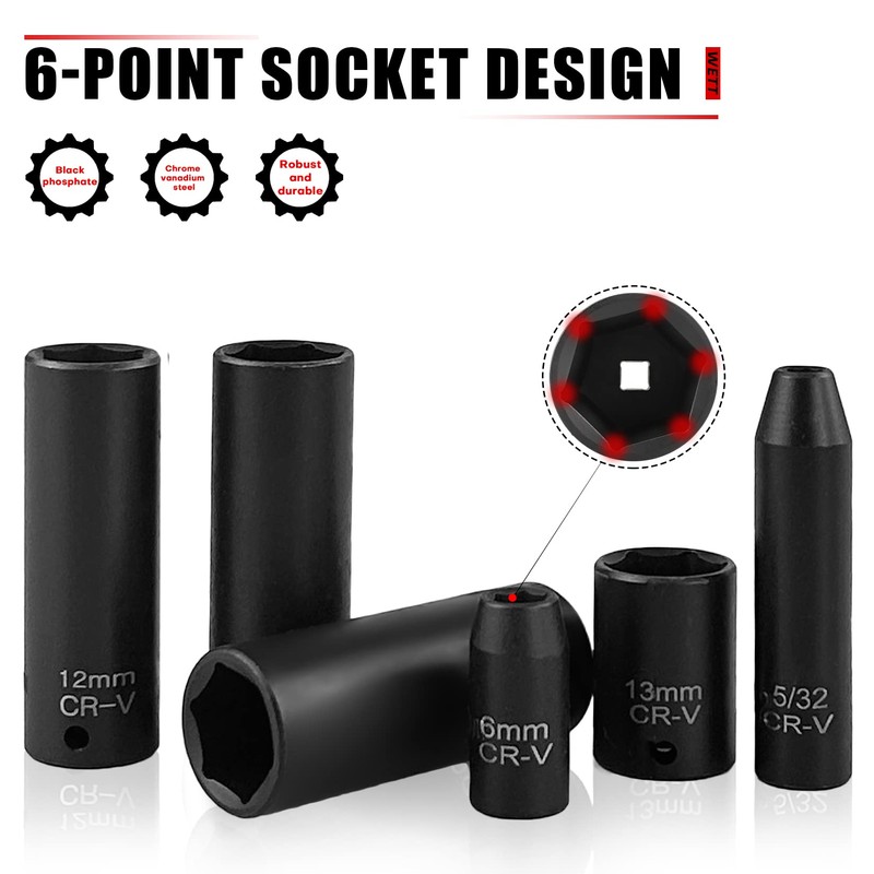 - 【Material】The impact socket set are made of high quality chrome vanadium steel alloy (50BV30), with black phosphate finish, strong and durable; not easy to rust or corrode.