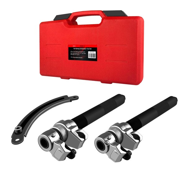 - Coil Spring Compressor Tool Set: 2Pcs coil spring compressor (jaw opening 0.9"-11"; coil with diameter 8"-12.2") 1Pc extendable bracket