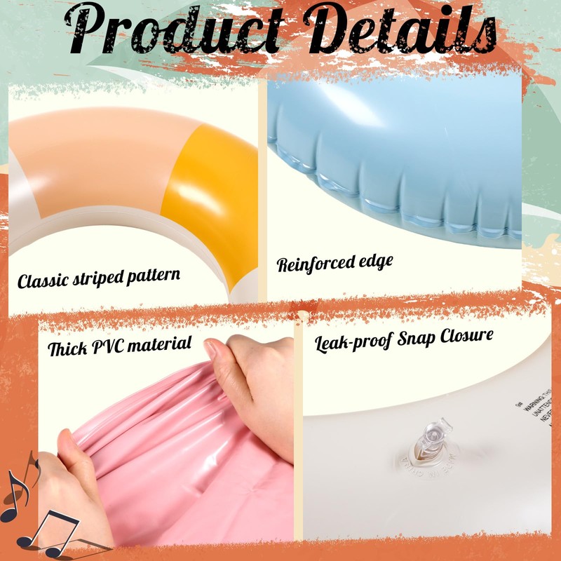 - Classic Striped Design: the inflatable rings for pool have classic striped design and beautiful ocean color, allow you to be conspicuous and attractive in the crowd in summer themed pool party and beach activities