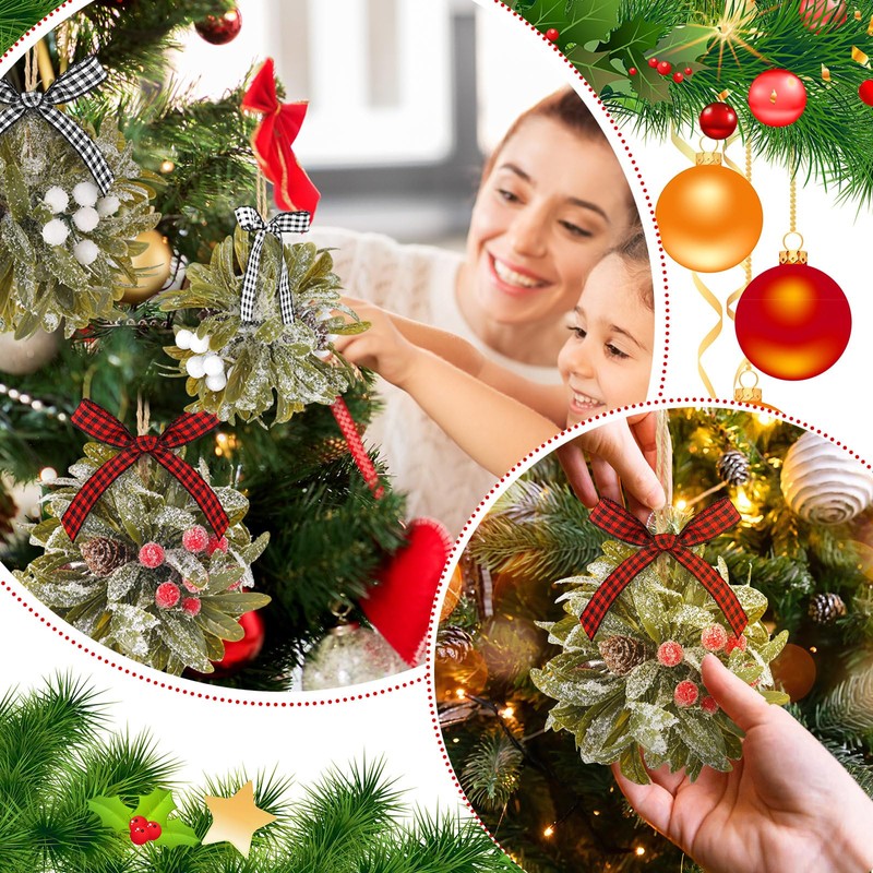 - Beautifully Crafted: the Christmas mistletoe ball with berries is made of realistic fake leaves and berries, complete with buffalo checkered bow webbing and pine cones, which is bundled into a sphere and drizzled with artificial snowflakes to give a stunning feel; Mistletoe balls are tied with a loop of twine webbing at the top for hanging and displaying