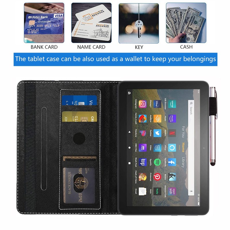 - 【Full Protection】- Fire HD 8 Plus Tablet case ultra slim and lightweight design with fashion pattern. PU leather soft-touch front exterior with soft TPU back, protect the tablet from dirt, scratch, shocks and bumps.Shockproof and impact resistant.